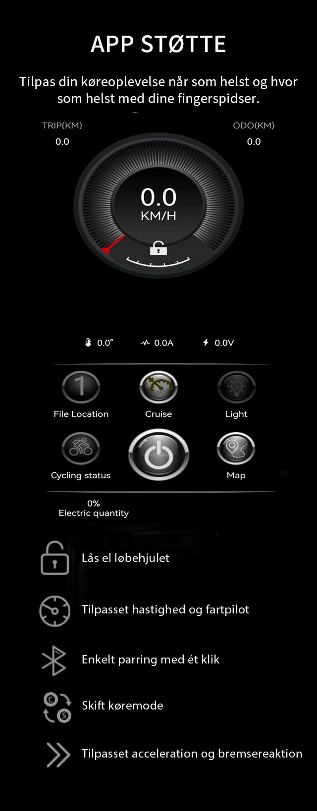3 hastighedsindstillinger: Øko | Normal | Sport