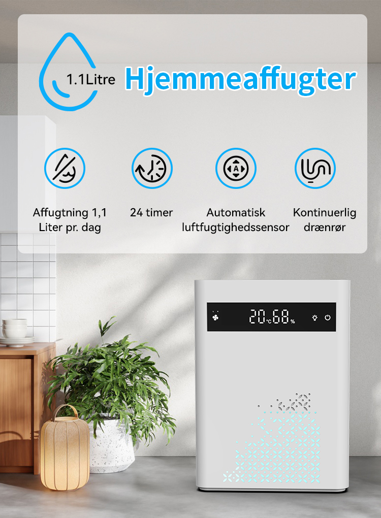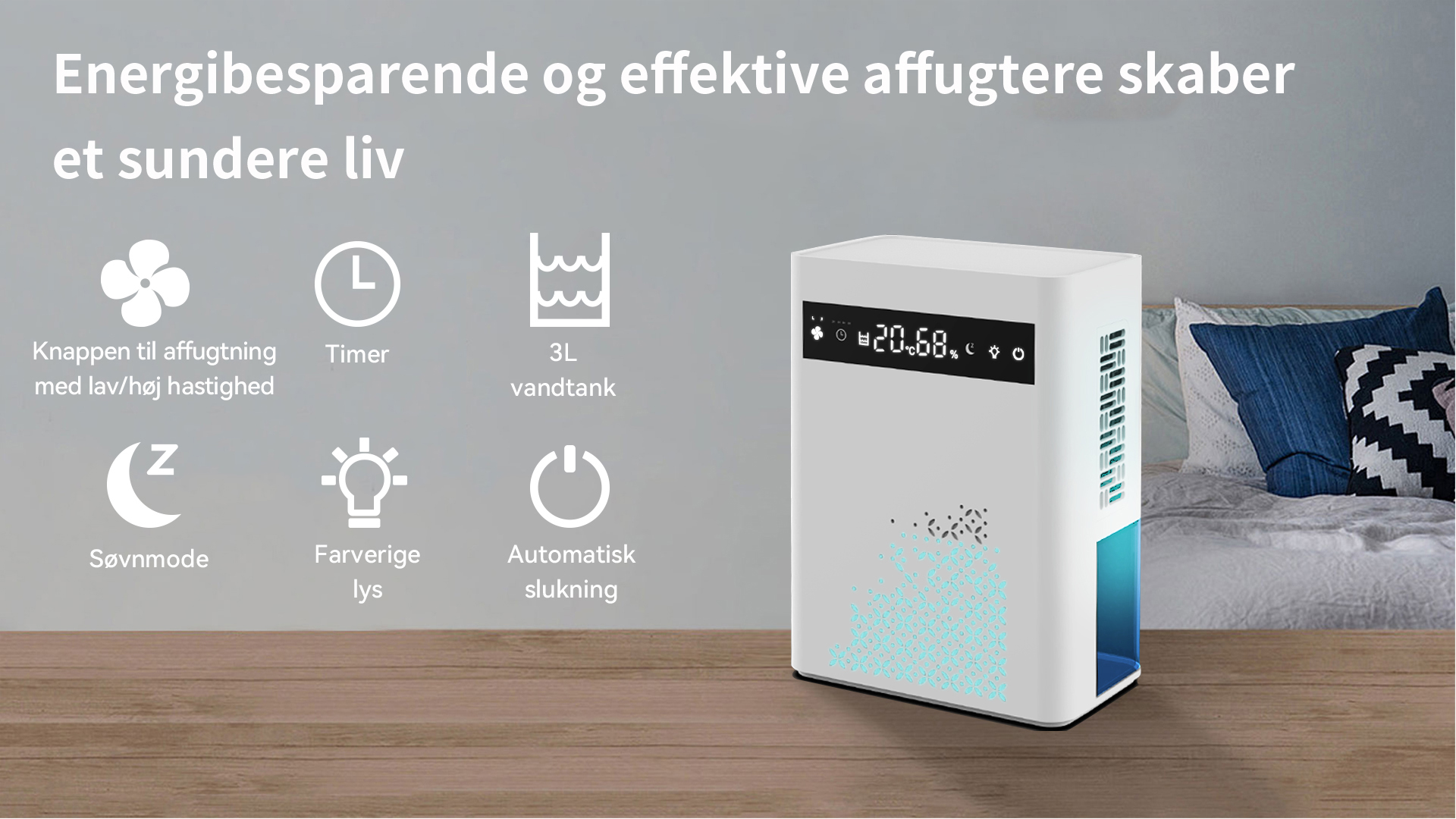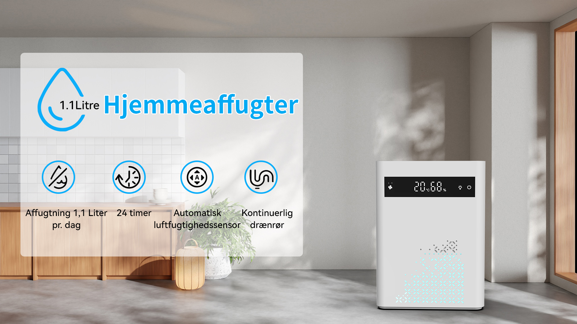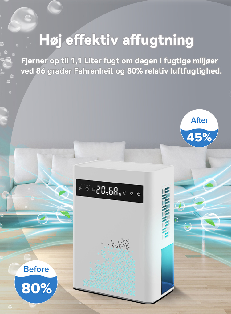 Fjerner fugtigheden I luften så dit værelse føles mere behageligt at opholde sig I, ved hjælp af en yderst effektiv affugtningsteknologi.