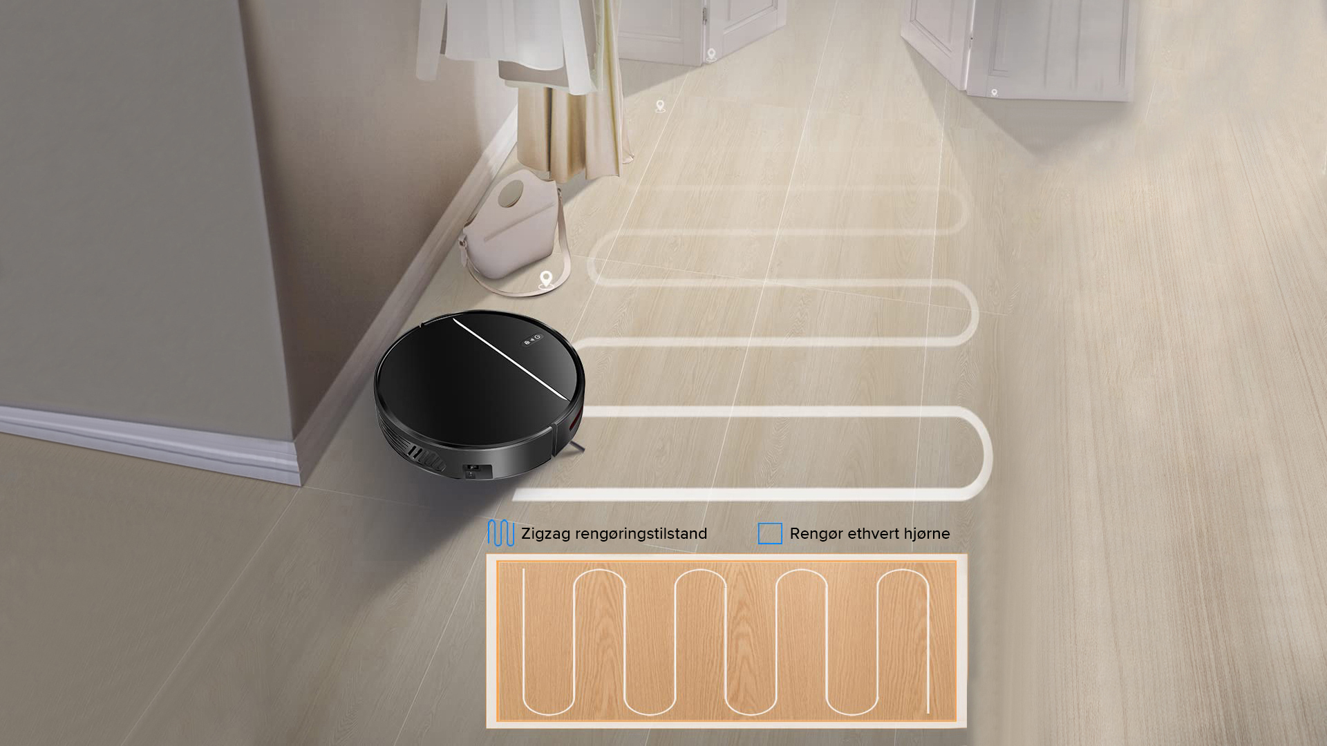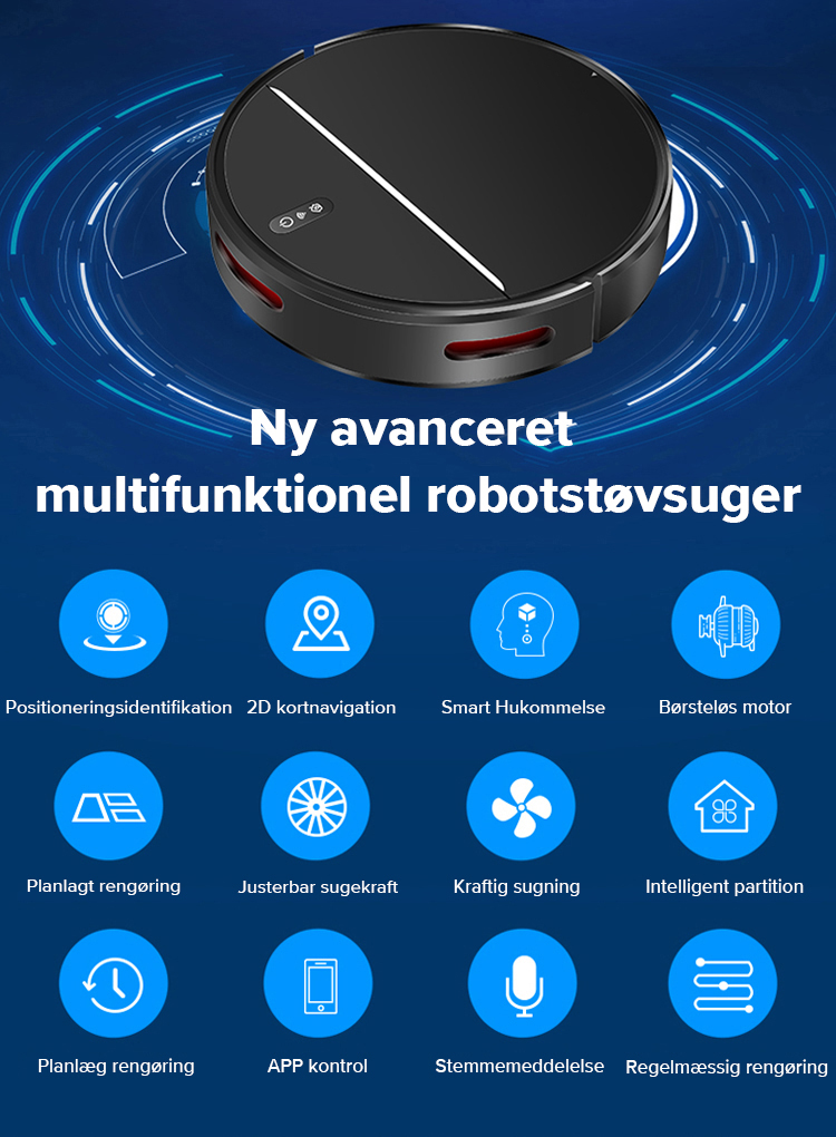 Robotstøvsugeren vil placere hele huset og organisere rengøringen af skillevægge. Rengøringseffektiviteten vil blive væsentligt forbedret på grund af den fælles rengøringsvej.