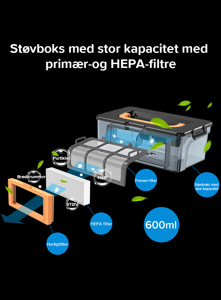 Uanset om du har holdt en fest eller blot skal have den ugentlige rengøring klaret, kan du være sikker på, at M7S er klar til opgaven. M7S er udstyret med en børsteløs X7-motor, som har op til 4000Pa sugekraft, som garanterer at kunne støvsuge alt fra støv til hundehår, og efterlade dine gulve skinnende rene.