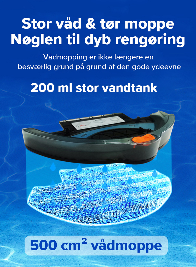 Derfor kommer M7S med en indbygget moppefunktion, som kan vaske dine gulve langt bedre, end du selv kan.