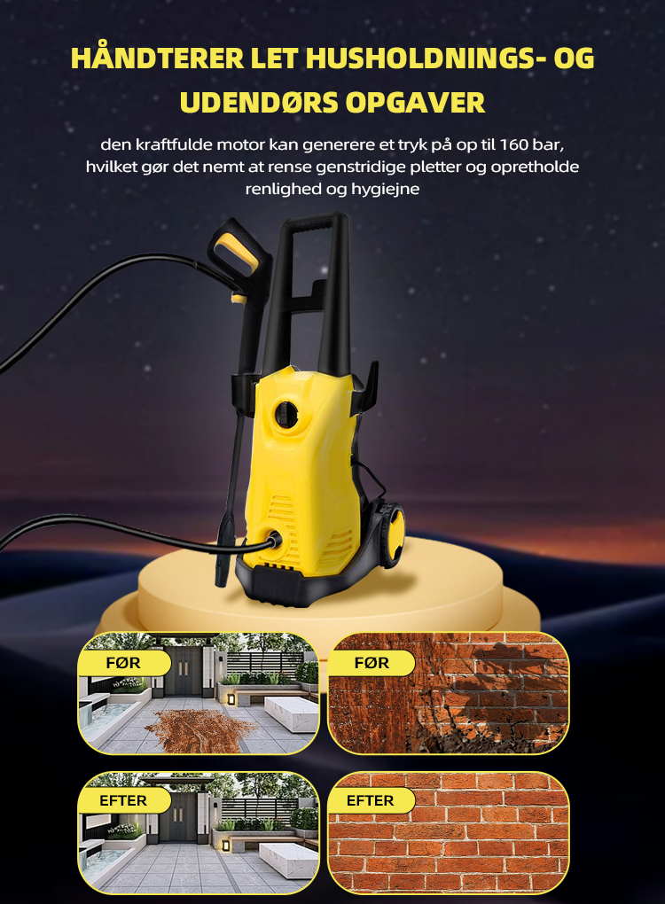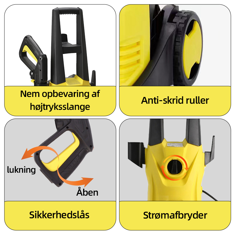 Vores højtryksrenser er designet med en robust vandtæt konstruktion, der sikrer pålidelig præstation selv under de mest krævende forhold. Uanset om den bruges til udendørs projekter eller indendørs rengøringsopgaver, er den bygget til at modstå vandudsættelse uden at gå på kompromis med effektivitet eller sikkerhed. Dette forlænger udstyrets levetid.