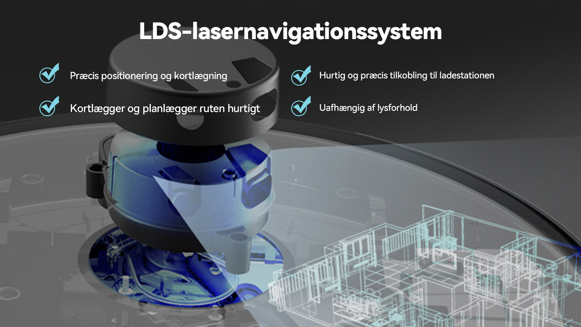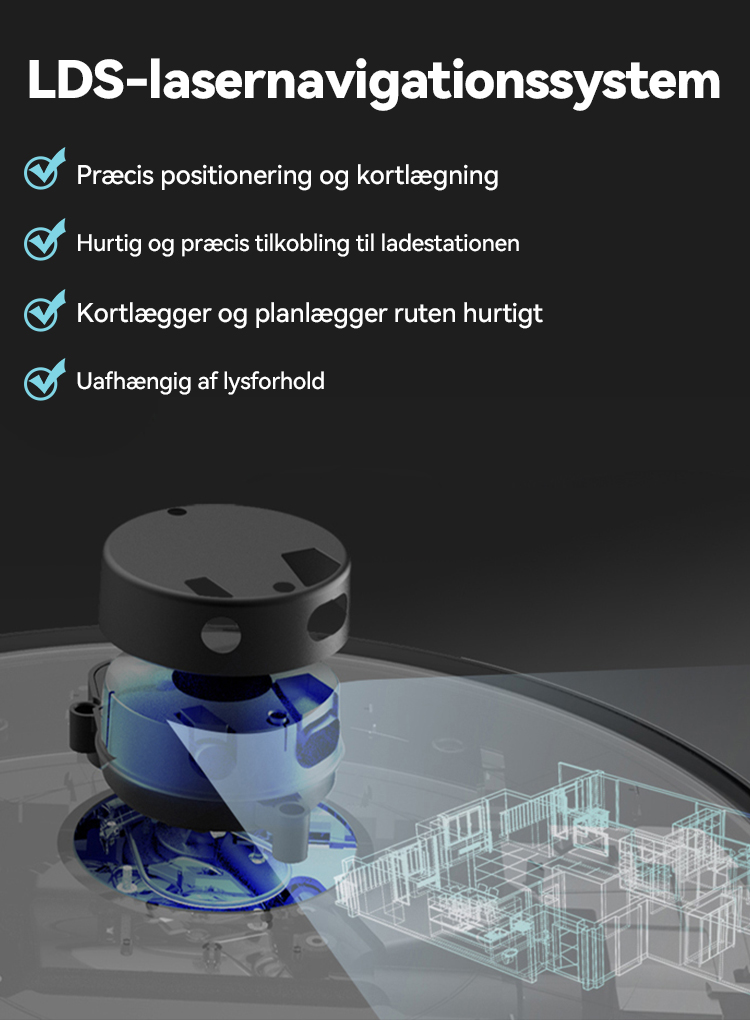Navigationssystem: LiDAR Laser Navigator, kan lagre op til 5 kort